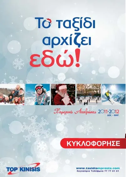 Ο νέος ταξιδιωτικός κατάλογος «Χειμερινές Αποδράσεις 2011 - 2012» διατίθεται σε όλα τα γραφεία της Top Kinisis σε όλη την Κύπρο, όπου το έμπειρο προσωπικό της εταιρείας είναι πάντα έτοιμο να σας εξυπηρετήσει.