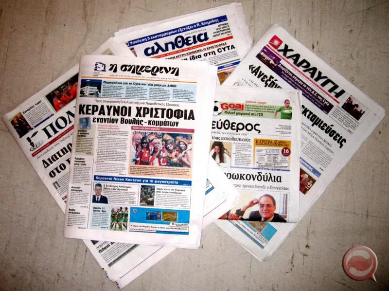 Η «Αλήθεια», με πηχυαίο τίτλο «Φεύγει για 4 λόγους», γράφει ότι ο Υπουργός Οικονομικών Κίκης Καζαμίας αποχωρεί για τη μη ανανέωση της θητείας του Διοικητή της Κεντρικής Τράπεζας, για το θέμα του καζίνο, το ότι το ΑΚΕΛ αντί να τον στηρίζει άρχισε να διαχωρίζει τη θέση του από τα αντιλαϊκά μέτρα και λόγω της κατάστασης της υγείας του. Αναφέρει επίσης ότι μίνι ανασχηματισμός τη Δευτέρα ή Τρίτη. Φεύγουν Καζαμίας και Πραξούλα Αντωνιάδου, μετακινείται στο ΥΠΟΙΚ ο Βάσος Σιαρλής και στο ΥΠΕΣ η Ελένη Μαύρου. Ο Νεοκλής Συλικιώτης μετακινείται στο Υπουργείο Εμπορίου ενώ φεύγει οριστικά ο Αθανάσιος Ορφανίδης από την Κεντρική Τράπεζα μετά το βροντερό όχι του Προέδρου Χριστόφια για ανανέωση της θητείας του. Αλλού γράφει ότι η Βουλή βάζει μπροστά για επέκταση του ορίου αφυπηρέτησης στη Δημόσια Υπηρεσία μέχρι τα 64 χρόνια.