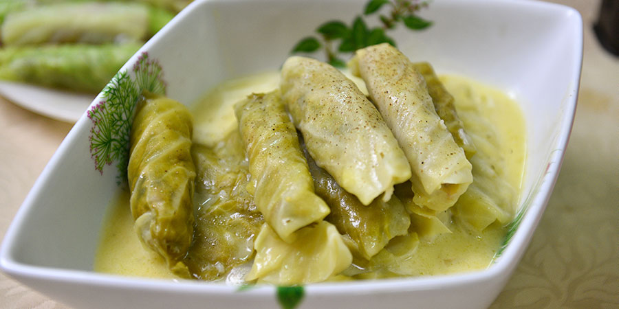 Γεμίζετε με τον κιμά τα φύλλα του λάχανου και τα τυλίγετε καλά.