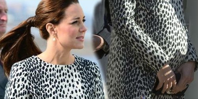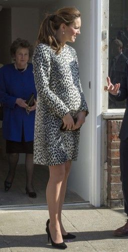 Όπως βλέπετε και στη φωτο, η Δούκισσα του Κέιμπριτζ, η οποία περιμένει το δεύτερο παιδί της με τον πρίγκιπα Ουίλιαμ, επέλεξε να φορέσει ένα ασπρόμαυρο λεοπάρ κοντό φόρεμα, το οποίο τόνιζε τη φουσκωμένη της κοιλίτσα.