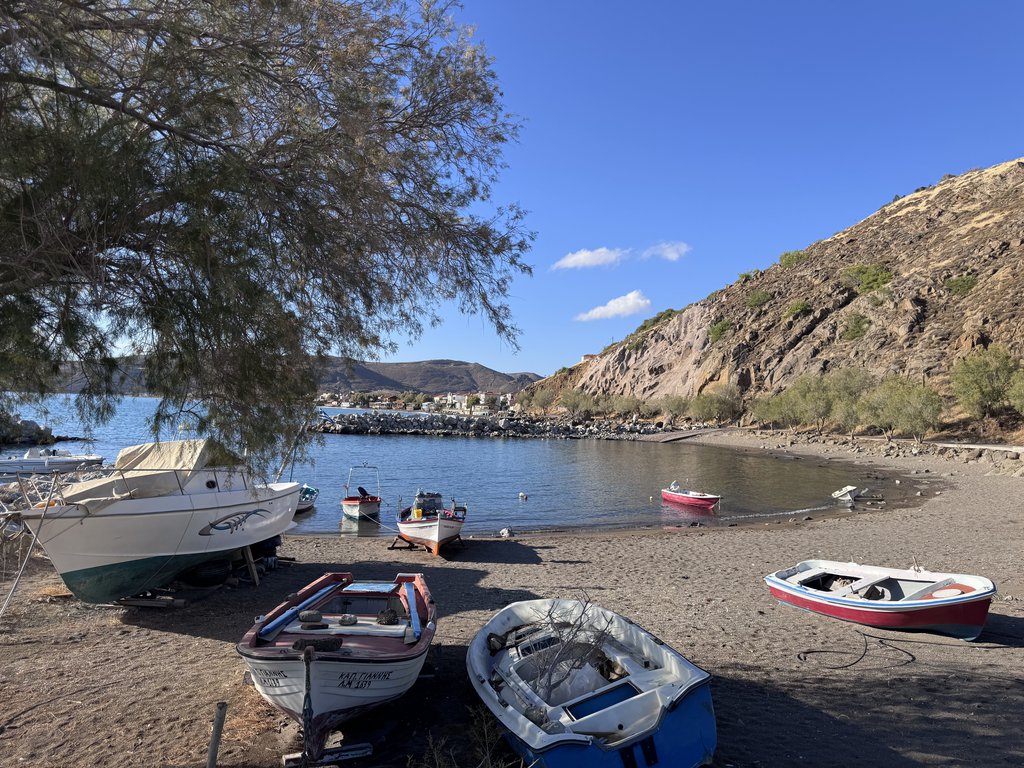 Αφού φτάσαμε εκεί, περπατήσαμε κατά μήκος της παραλίας με τον δρόμο να μας οδηγεί σε ένα μικρό λιμανάκι και στο ξωκλήσι της Παναγιούδας. Στη διαδρομή, σε αυτό το μέρος της παραλίας, υπάρχουν διάφορα γλυπτά εμπνευσμένα, φυσικά, από τη Σαπφώ, η παρουσία της οποίας διαπνέει με έναν μυστηριακό τρόπο τον τόπο. Παρότι Οκτώβριος, υπήρχε ακόμη αρκετός κόσμος στο χωριό, ο οποίος απολάμβανε την ηρεμία του τοπίου. Εμείς φάγαμε ωραίο, σπιτικό φαγητό στο «Αιγαίο» ατενίζοντας τη θάλασσα πριν αναχωρήσουμε για τον τελευταίο προορισμό της μέρας, τον Μεσότοπο.