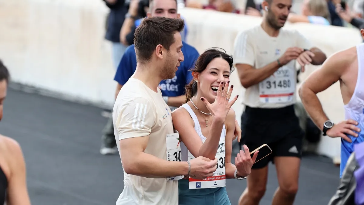Στη διάρκεια του τερματισμού των 10 χιλιομέτρων, στο Παναθηναϊκό Στάδιο, δρομέας… γονάτισε και έκανε πρόταση γάμου στην αγαπημένη του.