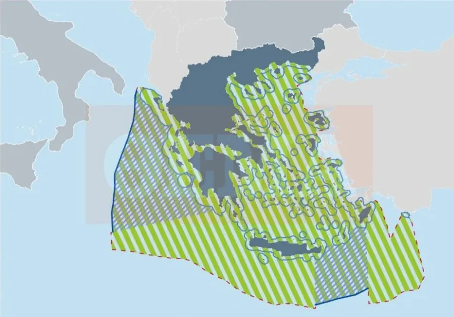 Ο χάρτης, ο οποίος δημοσιεύεται στη σχετική σελίδα της Ε.Ε. για τον ΘΧΣ, αποτυπώνει πέραν της δυνητικής ΑΟΖ βάσει του νόμου 4001/2011 (όπως ήταν ο αρχικός χάρτης που είχε δημοσιευθεί τον Απρίλιο) και τις δύο περιοχές όπου η Ελλάδα έχει κηρύξει ΑΟΖ με τις συμφωνίες που έχουν συναφθεί με την Αίγυπτο και την Ιταλία.