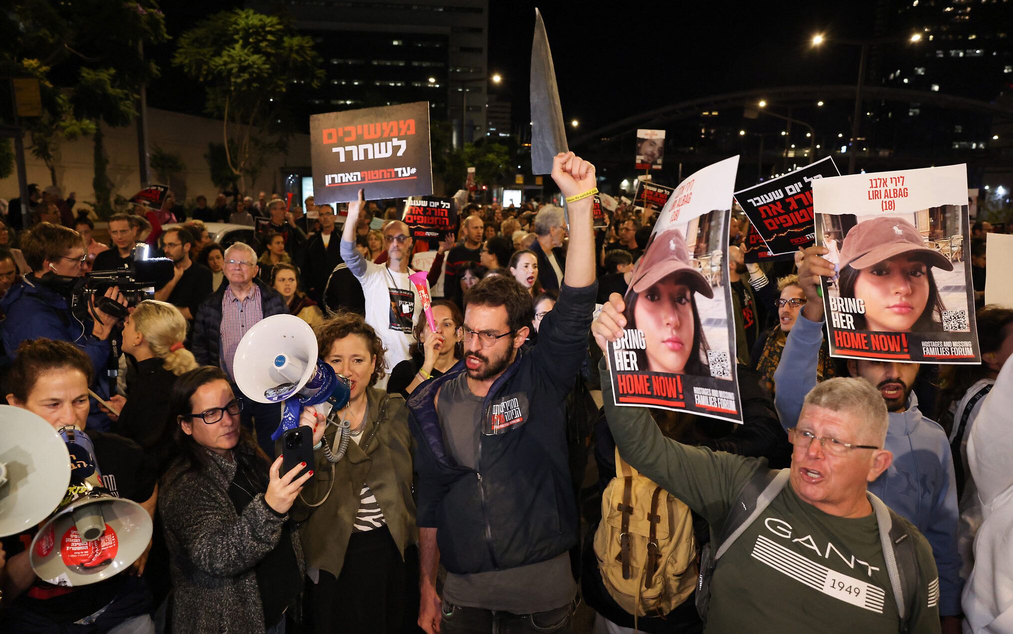 Εικόνες που μεταδόθηκαν από την ισραηλινή τηλεόραση δείχνουν μεγάλα πλήθη να συγκεντρώνονται στο κέντρο του Τελ Αβίβ και να αποκλείουν κεντρική αρτηρία. Αυτοί αξίωσαν να αναλάβει δράση η κυβέρνηση για να εξασφαλίσει την άμεση απελευθέρωση των ομήρων που κρατούνται από τη Χαμάς στη Λωρίδα της Γάζας.