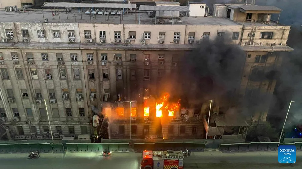 Το κρατικό πρακτορείο ειδήσεων MENA μετέδωσε χθες ότι οι αρχές απέτρεψαν την εξάπλωση της πυρκαγιάς στο υπόλοιπο κτίριο και τις γειτονικές στέγες.