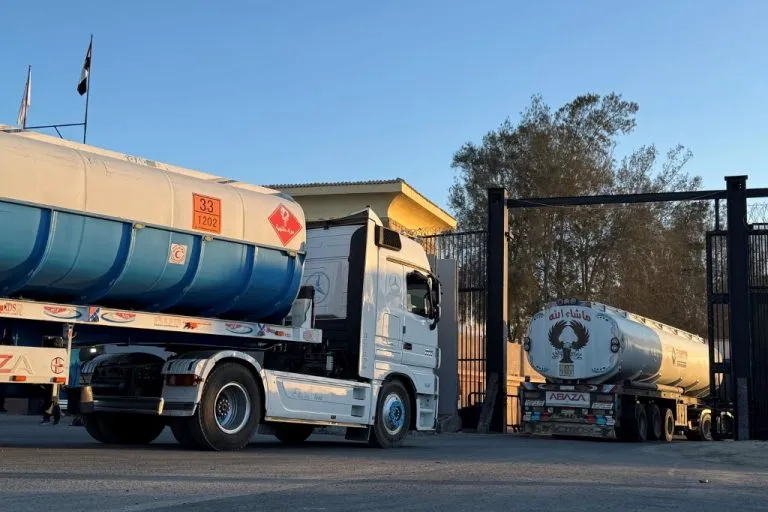 Βίντεο που μετέδωσε το Reuters δείχνει μια πρώτη ομάδα φορτηγών – ανάμεσά τους και βυτιοφόρα γεμάτα καύσιμα-- να κινείται από την αιγυπτιακή πλευρά των συνόρων προς το πέρασμα της Ράφα σήμερα τα ξημερώματα.