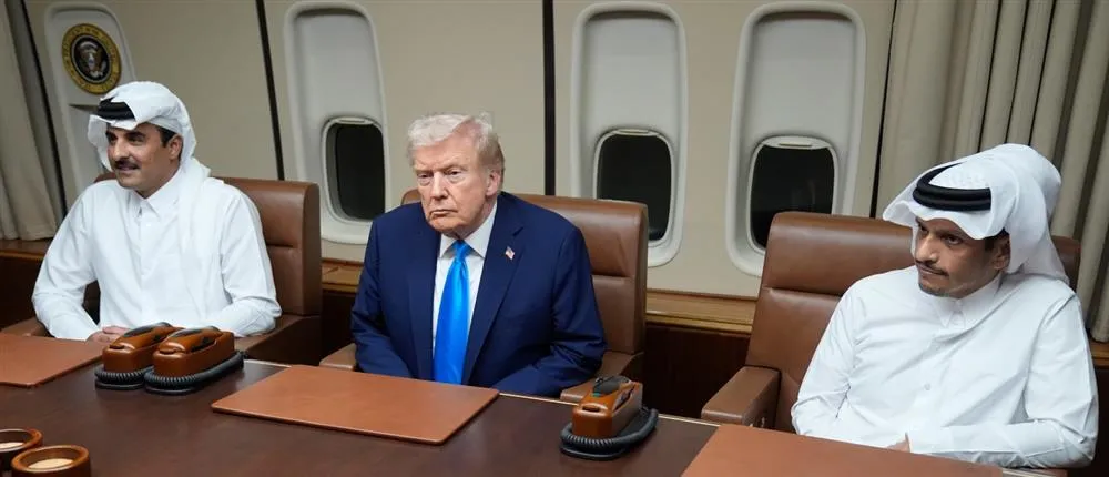 Ο πρόεδρος των ΗΠΑ Ντόναλντ Τραμπ συναντήθηκε σήμερα, μέσα στο προεδρικό αεροσκάφος, με τον εμίρη του Κατάρ και τον πρωθυπουργό της χώρας, με τους οποίους συζήτησε την εύθραυστη εκεχειρία στη Λωρίδα της Γάζας.