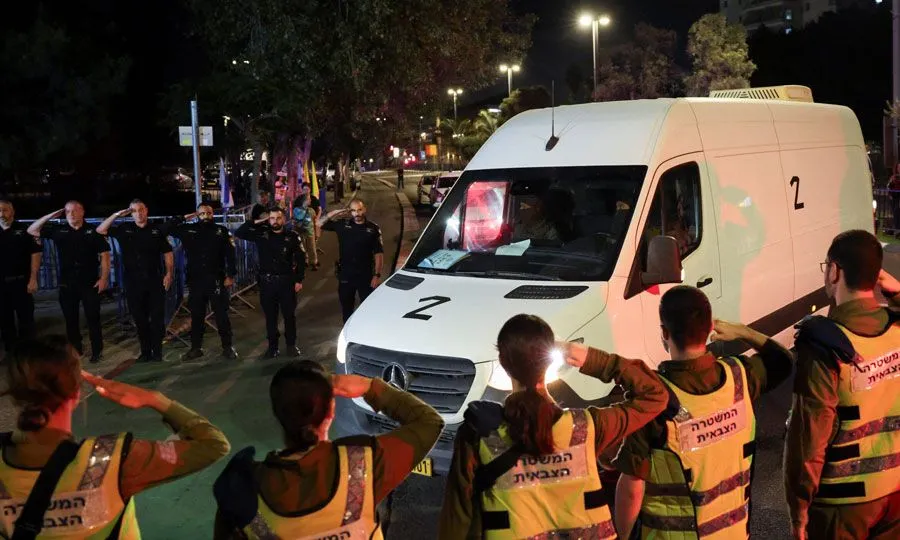 Τα λείψανα των ομήρων, που παραδόθηκαν στον ισραηλινό στρατό και τη Σιν Μπετ, την υπηρεσία εσωτερικής ασφαλείας, «θα μεταφερθούν στο Ισραήλ, όπου θα τα υποδεχθούν σε μια στρατιωτική τελετή…» προτού τα πάνε σε ένα εργαστήριο της ιατροδικαστικής υπηρεσίας για να ταυτοποιηθούν.