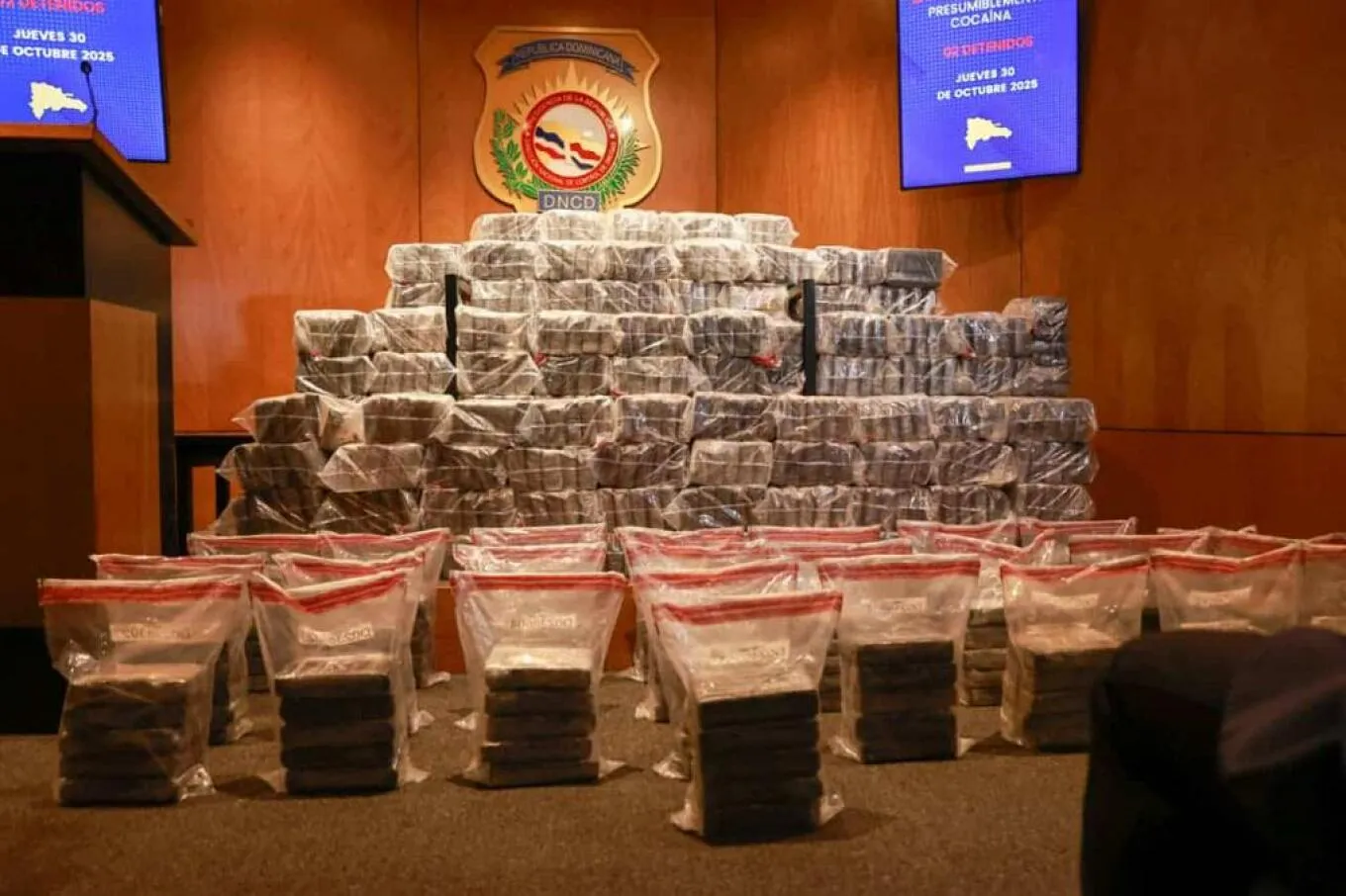 Στο πλοίο που εντοπίστηκε από τη Δομινικανή Δημοκρατία και «προερχόταν από τη Νότια Αμερική» έγινε νηοψία στο Μπανί, ανέφερε η Εθνική Διεύθυνση Ελέγχου Ναρκωτικών (DNCD), χωρίς να διευκρινίσει την ακριβή προέλευσή του, ούτε την ποσότητα της κοκαΐνης. Συνελήφθησαν δύο υπήκοοι της Δομινικανής Δημοκρατίας.