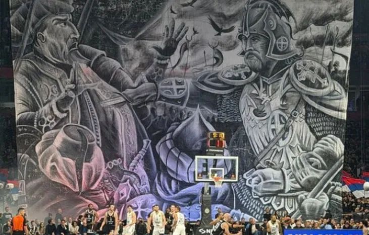 Το πανό που σήκωσαν οι Σέρβοι οπαδοί στο γήπεδο απεικόνιζε τον θάνατο του σουλτάνου Μουράτ Α’ από τον Σέρβο ιππότη, Μίλος Όμπιλιτς, στη μάχη του Κοσσυφοπεδίου το 1389