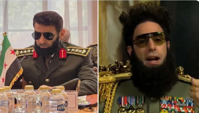 Μια εικόνα άρχισε να κάνει τον γύρο του διαδικτύου και δείχνει μια εκπληκτική ομοιότητητα στα όρια της στάτυρας, Πρόκειται για ένα Σύρου αξιωματικό και « Στρατηγό» Χαφαάζ Αλαντίν, του φανταστικού ηγέτης της Δημοκρατίας της Ουαντίγι ο οποίος είναι και ο κεντρικός πρωταγωνιστής της ταινίας «The Dictator» που τον υποδύεται ο ηθοποιός Sacha Baron Cohen.