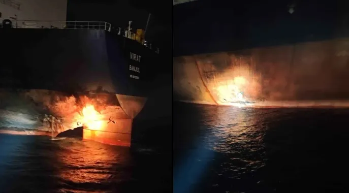 Το πλοίο, που φέρει σημαία Γκάμπιας και θεωρείται ότι ανήκει στον ρωσικό σκιώδη στόλο, «υπέστη ελαφρές ζημιές στη δεξιά πλευρά, πάνω από την ίσαλο γραμμή», διευκρίνισε το υπουργείο, υπογραμμίζοντας πως «δεν έχει εκδηλωθεί πυρκαγιά πάνω στο πλοίο και όλα τα μέλη του πληρώματος είναι καλά στην υγεία τους».
