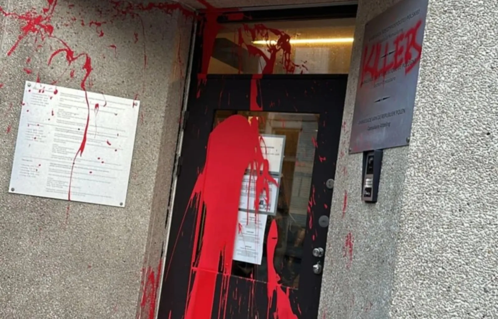 Άγνωστοι έριξαν κόκκινη μπογιά στην είσοδο του πολωνικού προξενείου στις Βρυξέλλες, ενώ έγραψαν και υβριστικά συνθήματα στην πρόσοψη του κτιρίου, έγινε σήμερα γνωστό από τον εκπρόσωπο Τύπου του υπουργείου Εξωτερικών της Πολωνίας.
