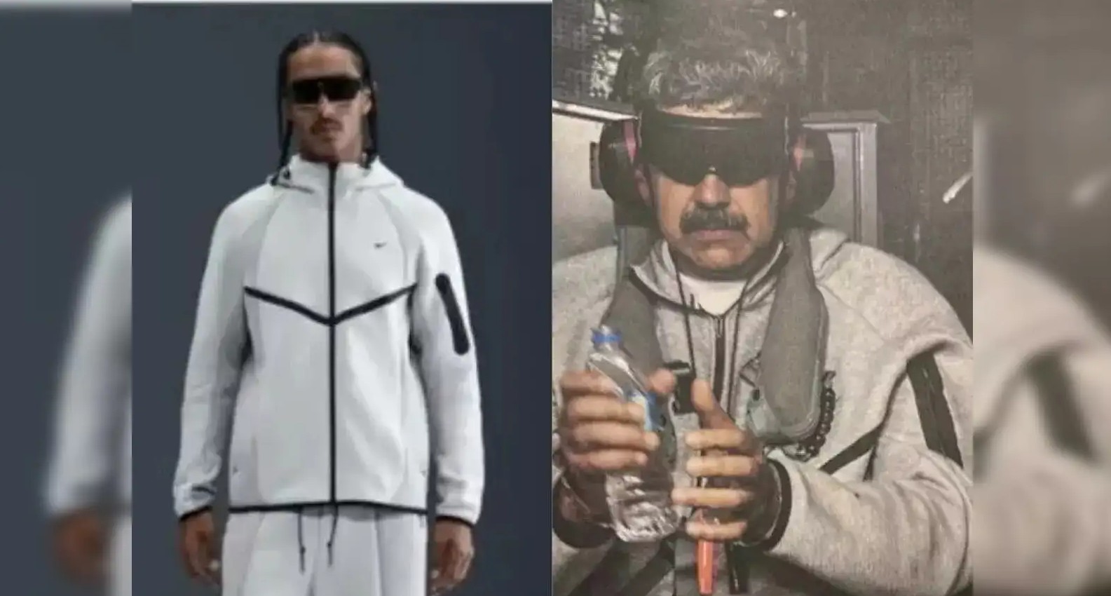 Ο πρόεδρος των ΗΠΑ, Ντόναλντ Τραμπ, ανάρτησε φωτογραφία του Μαδούρο με δεμένα μάτια και υπό περιορισμό πάνω σε πλοίο, φορώντας γκρι φόρμα Nike Tech Fleece.