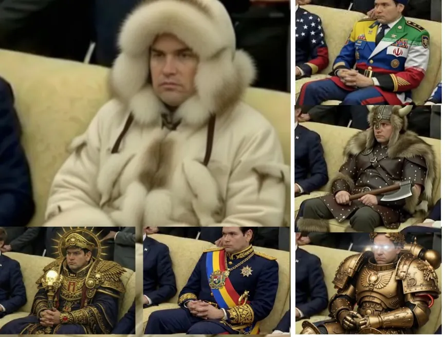 Αυτές οι εικόνες, που ξεκίνησαν ως σχόλιο για τον πολυδιάστατο ρόλο του Ρούμπιο στην εξωτερική πολιτική, έγιναν γρήγορα memes στο X (πρώην Twitter), με χιλιάδες παραλλαγές