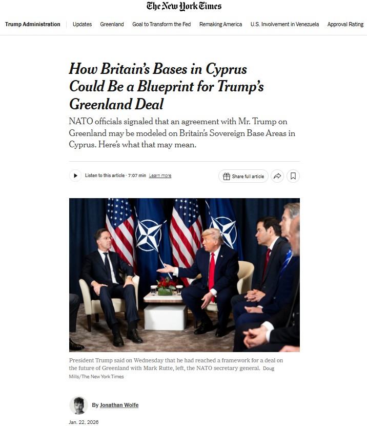 Διαβάστε επίσης: Γροιλανδία: Ετοιμάζουν «λύση» στα πρότυπα Βρετανικών Βάσεων Κύπρου