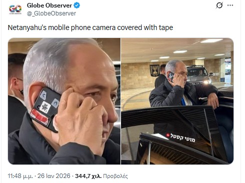 Στο Χ κυκλοφόρησε μάλιστα και φωτογραφία του Νετανιάχου όπου τον δείχνει με κινητό το οποίο έχει καλυμμμένες τις κάμερες του για να αποτρέψει τυχόν παρακολούθηση.