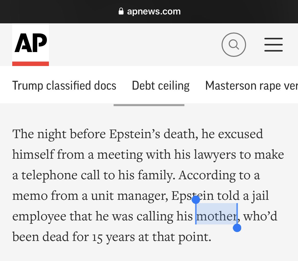 Από τα αρχεία που δημοσιοποιήθηκαν προκύπτει πως ο Τζέφρι Επστάιν υπέγραψε την διαθήκη του στις 8 Αυγούστου 2019, δύο ημέρες πριν βρεθεί νεκρός στο κελί του στη φυλακή του Μανχάταν, σύμφωνα με το ABC. Οκτώ ημέρες μετά τον θάνατο του Επστάιν την διαθήκη υπέγραψε ο επί χρόνια δικηγόρος του, Ντάρεν Ίνταϊκ ενώ έχει και υπογραφή του λογιστής του, Ρίτσαρντ Καν.