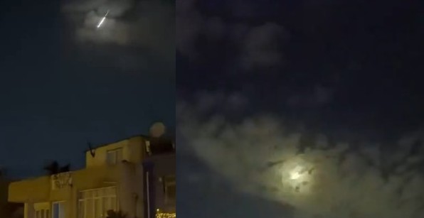 Adana'da çok sayıda vatandaş saat 03.30 sıralarında büyük bir gürültüyle uyandıklarına yönelik bildirimde bulundu. İncirlik Üssü'nden siren sesleri duyuldu. Bir süre sonra gökyüzünde parıltılı bir cismin düştüğü kameralara yansırken, bölgeye yönelen bir füzenin havada imha… pic.twitter.com/jz6dwNOryB