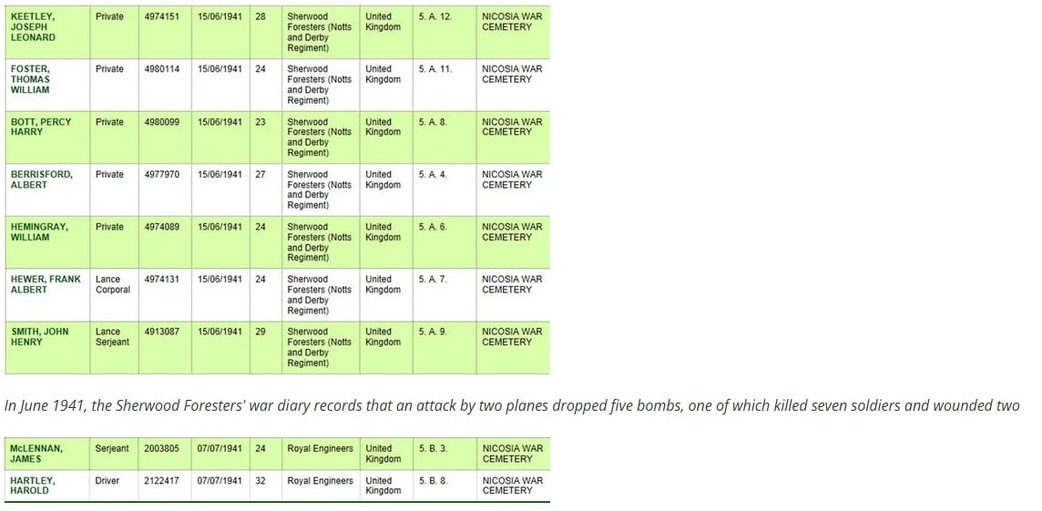 - 7 Ιουλίου 1941 - Διπλή επιδρομή: πρωινή επίθεση ξανά στη RAF Λευκωσίας και απογευματινός βομβαρδισμός στην περιοχή Αμμοχώστου. Οι κάτοικοι αναζήτησαν καταφύγιο σε υπόγειες στοές και θωρακισμένα κτίρια.