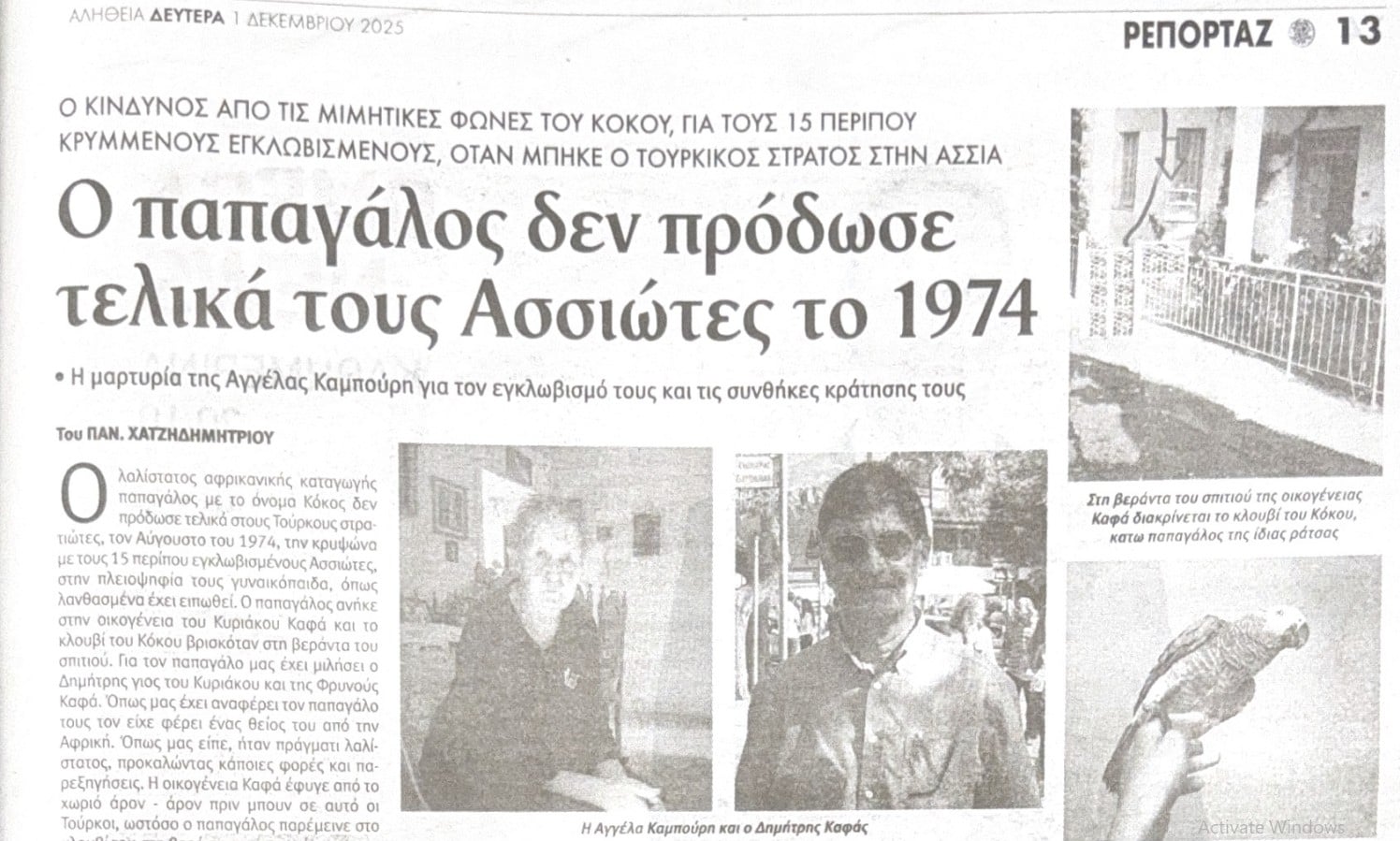 Μια άγνωστη, δραματική και ταυτόχρονα ανθρώπινη ιστορία από την τουρκική εισβολή του 1974 έρχεται ξανά στην επιφάνεια μέσα από τη μαρτυρία της Αγγέλας Καμπούρη, όπως παρουσιάζεται στην εφημερίδα Αλήθεια. Πρόκειται για το χρονικό του εγκλωβισμού περίπου 15 κατοίκων της Ασσιας, οι οποίοι κρύφτηκαν σε σπίτι συγγενών για να διαφύγουν τη σύλληψη από τους Τούρκους στρατιώτες που εισέβαλαν στο χωριό.
