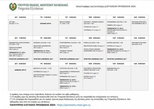 Δείτε το πρόγραμμα των εξετάσεων:
