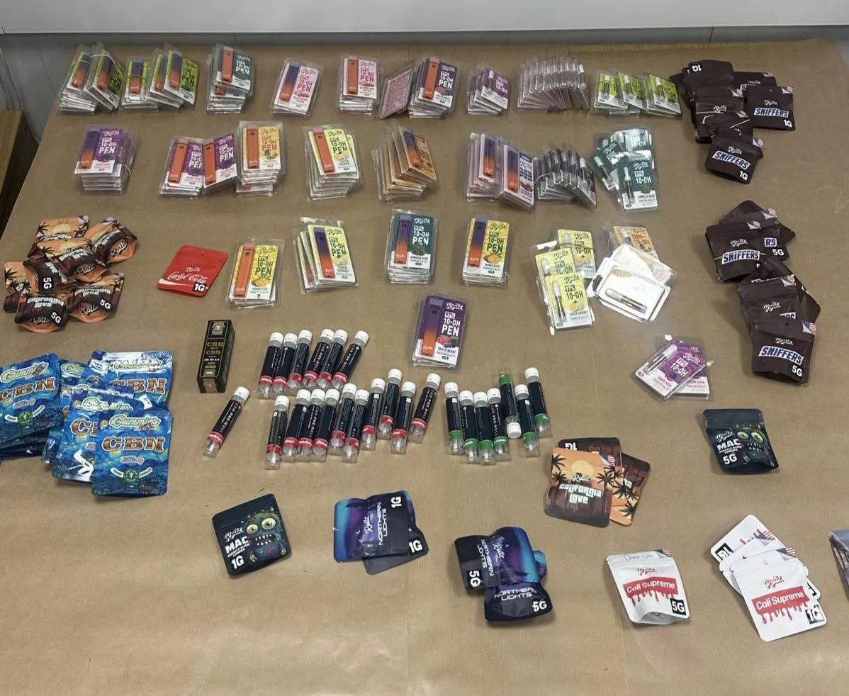 Συγκεκριμένα, κατά τη διάρκεια της έρευνας που διενεργήθηκε δυνάμει δικαστικού εντάλματος, εντοπίστηκαν και κατασχέθηκαν 657 συσκευασίες/προϊόντα που περιείχαν τετραυδροκανναβινόλη (THC), 11 συσκευασίες/προϊόντα που περιέχουν την ουσία κανναβιδιόλη (CBD), 24 χειροποίητα τσιγάρα που περιέχουν φυτική ύλη καθώς επίσης και μια πλάκα άγνωστης συμπαγούς ουσίας, βάρους 100 περίπου γραμμαρίων. Όλα τα ανευρεθέντα παραλήφθηκαν για περαιτέρω επιστημονικές εξετάσεις.