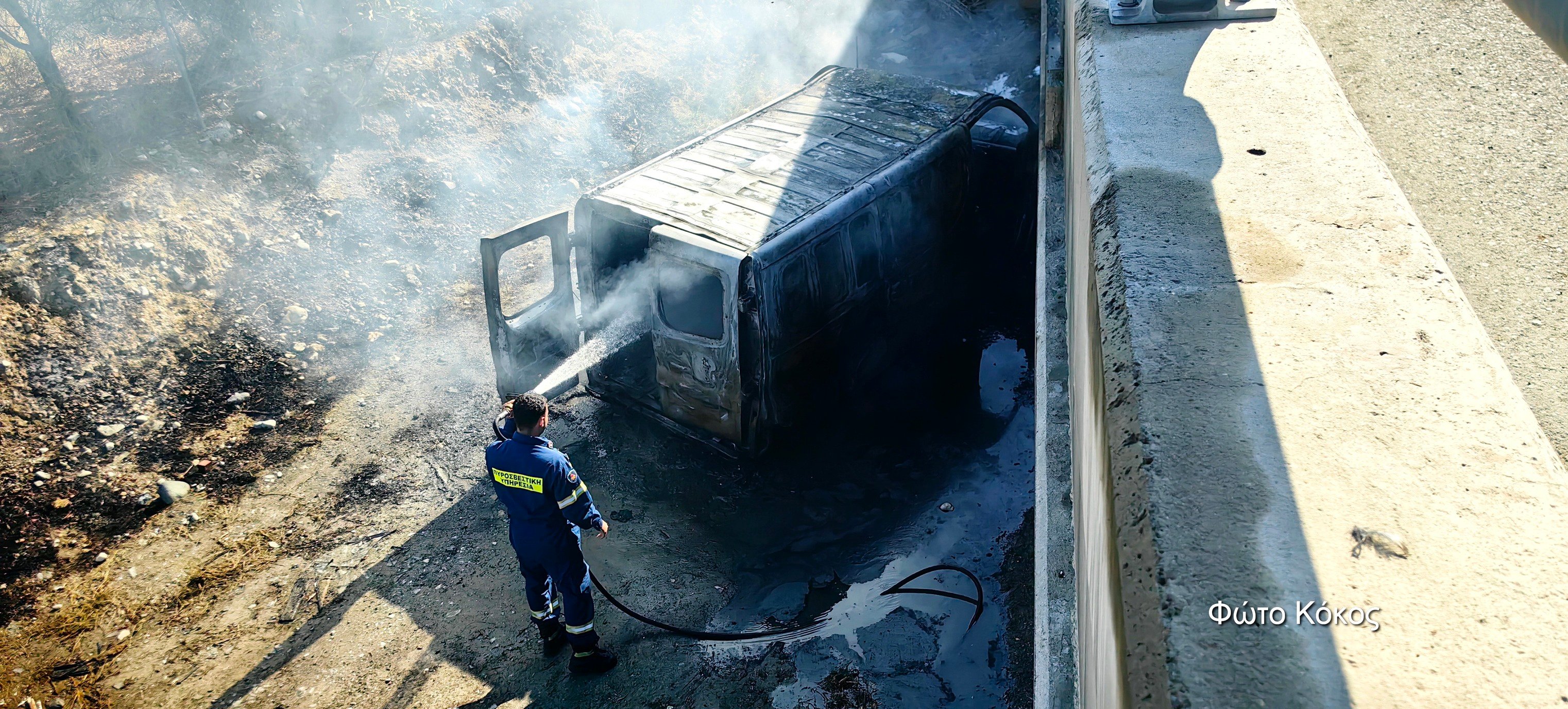 Το σημείο στη Γερμασόγεια όπου εντοπίστηκε το φλεγόμενο βαν