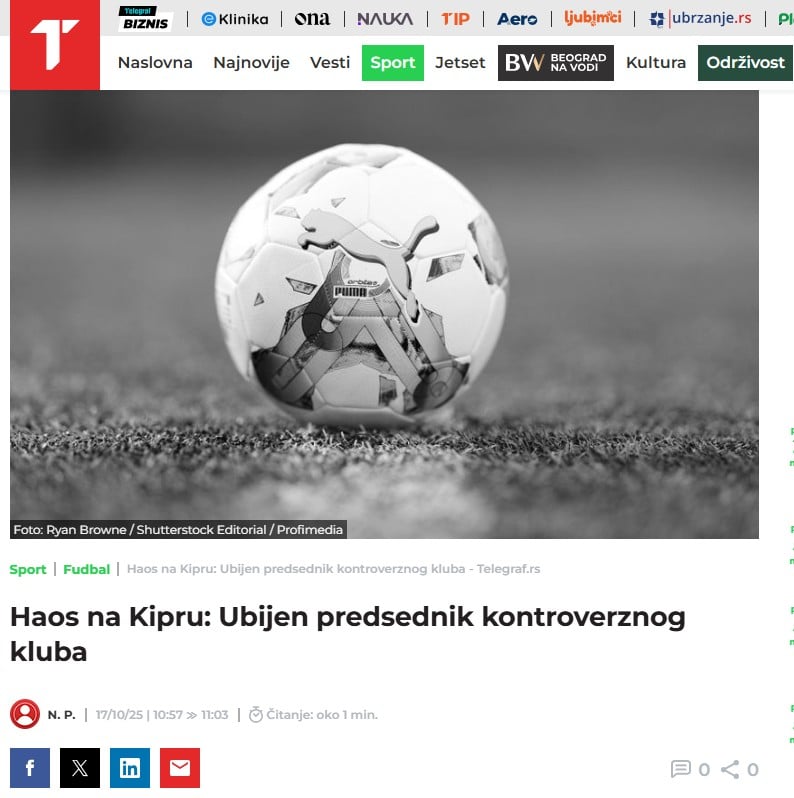 Σερβική Telegraf: Χάος στην Κύπρο: Δολοφονήθηκε ο πρόεδρος της Καρμιώτισσας