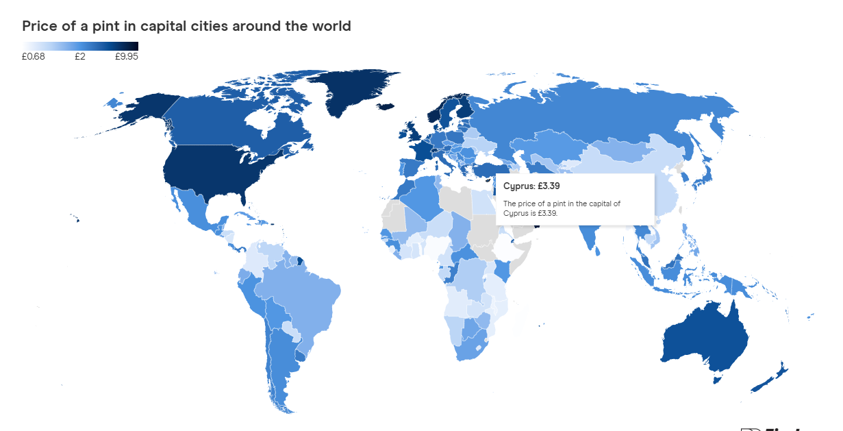 Γενικά, οι χώρες της Μέσης Ανατολής και της Βόρειας Ευρώπης έχουν τις πιο ακριβές μπύρες στον κόσμο.