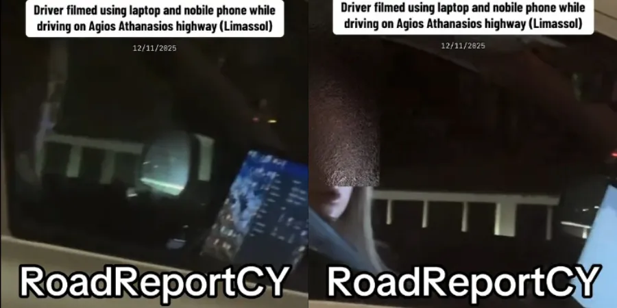 Οδηγός στην Κύπρο καταγράφηκε να οδηγεί στον αυτοκινητόδρομο κρατώντας ταυτόχρονα κινητό και λάπτοπ.