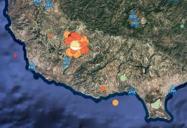Το Τμήμα Γεωλογικής Επισκόπησης του Υπουργείου Γεωργίας, Αγροτικής Ανάπτυξης και Περιβάλλοντος σε ανακοίνωση αναφέρει ότι από το πρωί της Τετάρτης 12 Νοεμβρίου 2025 άρχισε μια σεισμική ακολουθία στην ευρύτερη περιοχή Αγίας Μαρίνας Κελοκεδάρων, 20 χιλιόμετρα βορειοανατολικά της πόλης της Πάφου. Εντός των πρώτων 5 ωρών σημειώθηκαν δύο ισχυροί σεισμοί με μεγέθη M5.2 και Μ5.3 βαθμούς στην κλίμακα Ρίχτερ, οι οποίοι έγιναν έντονα αισθητοί σε ολόκληρη την Κύπρο, ιδιαίτερα στις επαρχίες Πάφου, Λεμεσού και Λευκωσίας και αντιληπτοί στα παράλια της ανατολικής Μεσογείου.