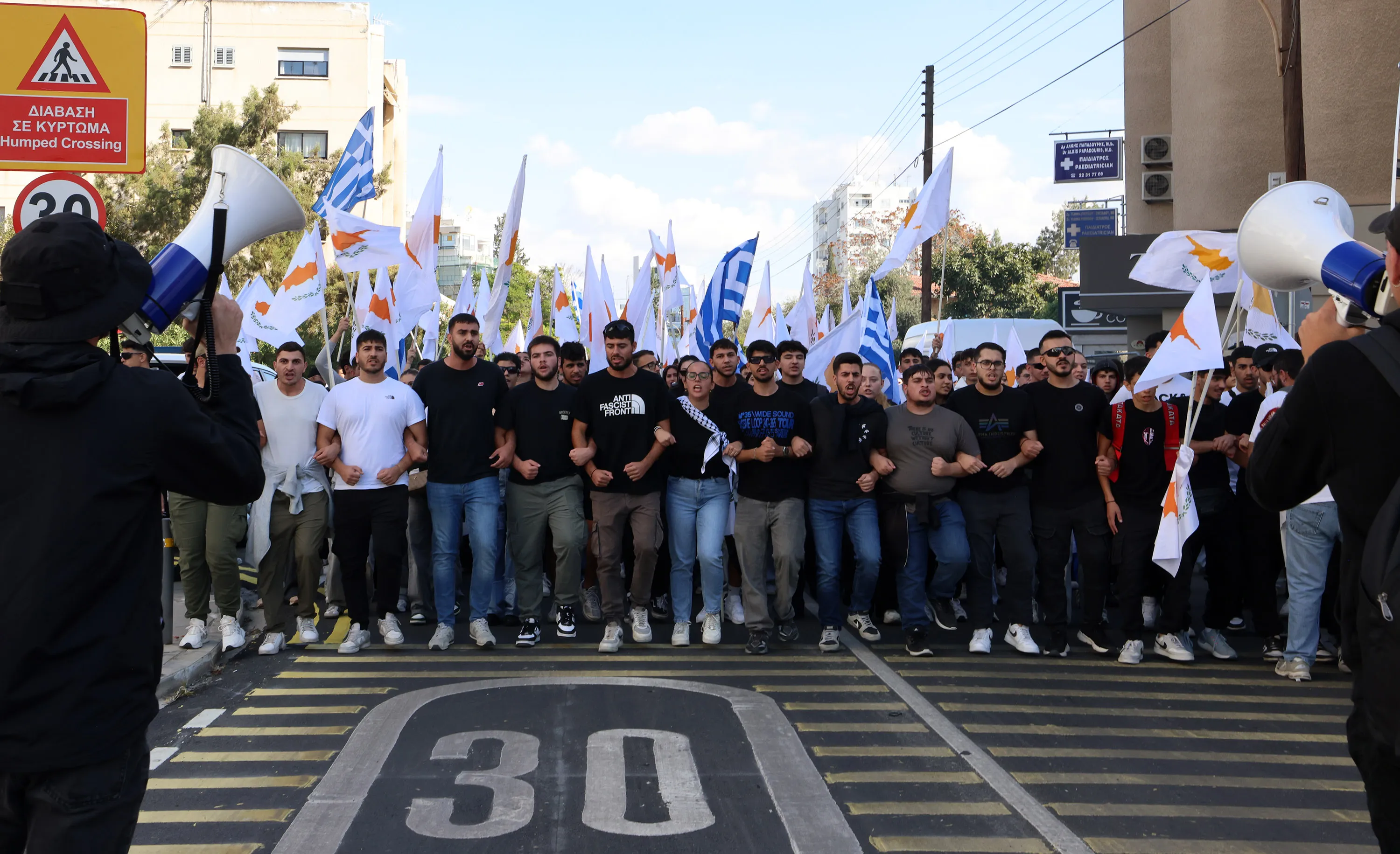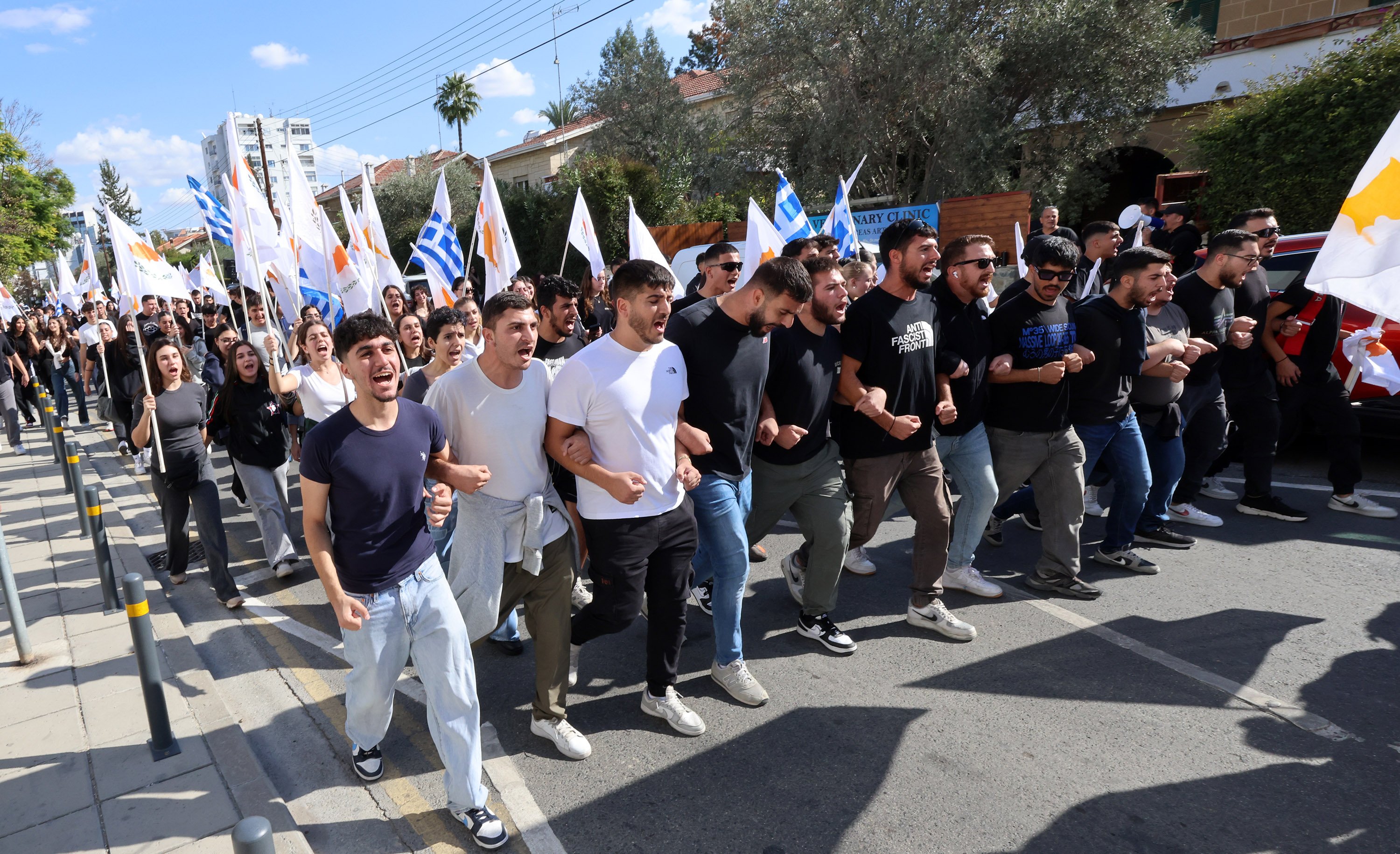 «Εμείς, ως μαθητές και μαθήτριες, αγωνιζόμαστε για ένα κόσμο ειρηνικό, χωρίς πολέμους, όπου οι άνθρωποι θα ζουν αξιοπρεπώς και ελεύθεροι. Θέλουμε την πατρίδα μας ελεύθερη και επανενωμένη, όπου Ελληνοκύπριοι και Τουρκοκύπριοι θα ζουν αδελφωμένοι. Μια πατρίδα χωρίς ξένους στρατούς και εγγυήσεις, μακριά από το ΝΑΤΟ και τα παρακλάδια του», υπογράμμισε.