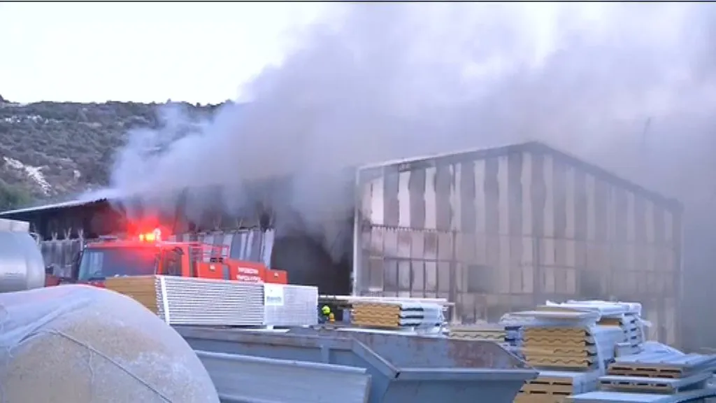 Η πυρόσβεση συνεχίζεται κυρίως εντός του εργοστασίου σε μεγάλες στιβάδες από πάνελ πολυουρεθάνης, με νερό και χρήση αφρού, σημειώνει.