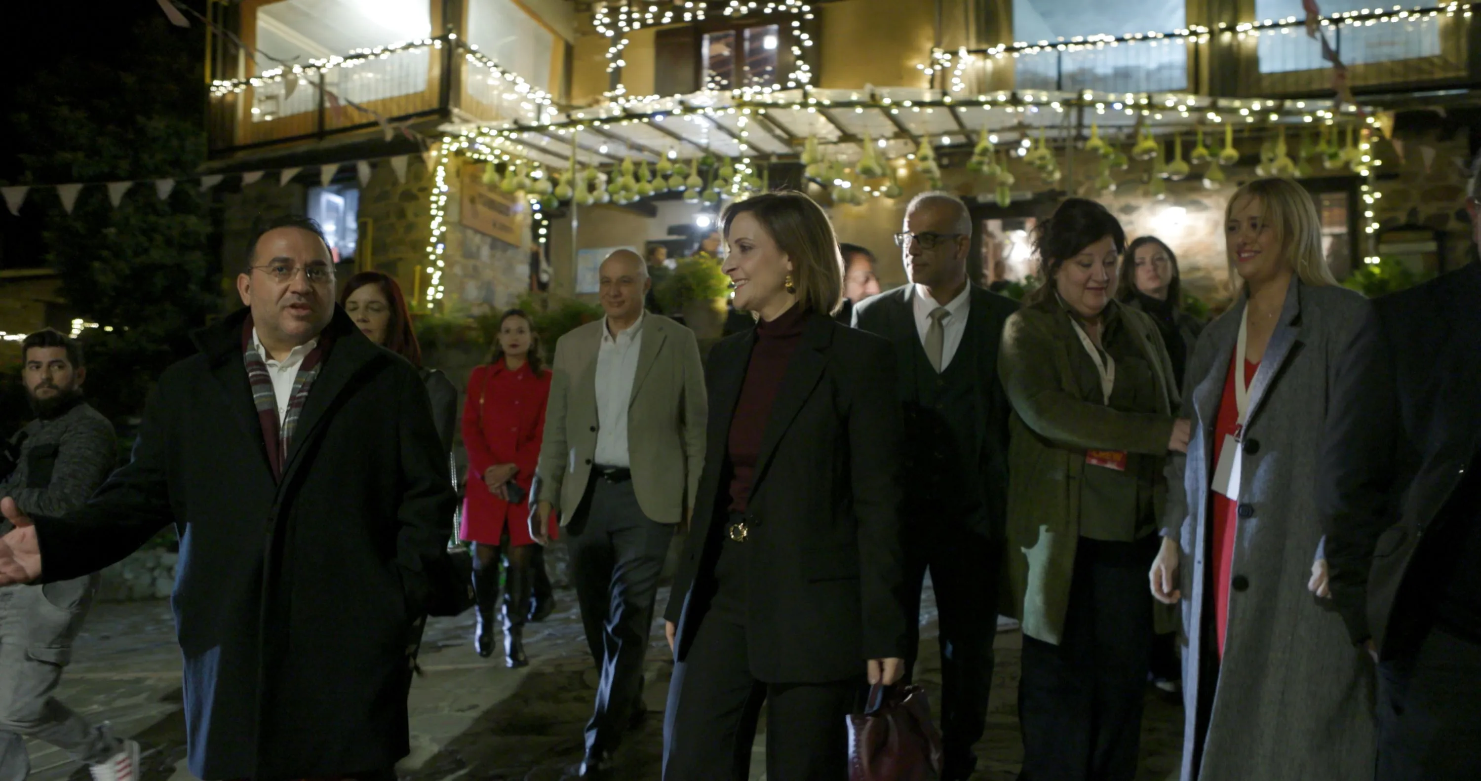 Είναι πολλαπλά τα οφέλη που προκαλούνται για την ύπαιθρο από τη λειτουργία του θεσμού των Χριστουγεννιάτικων χωριών, ανέφερε το βράδυ της Παρασκευής η Πρώτη Κυρία, Φιλίππα Καρσερά – Χριστοδουλίδη, σε χαιρετισμό της στην τελετή εγκαινίων των Χριστουγεννιάτικων χωριών της περιόδου 2025-2026, στο Φικάρδου, στην παρουσία του Υφυπουργού Τουρισμού, Κώστα Κουμή, ξένων Πρέσβεων και άλλων επισήμων.