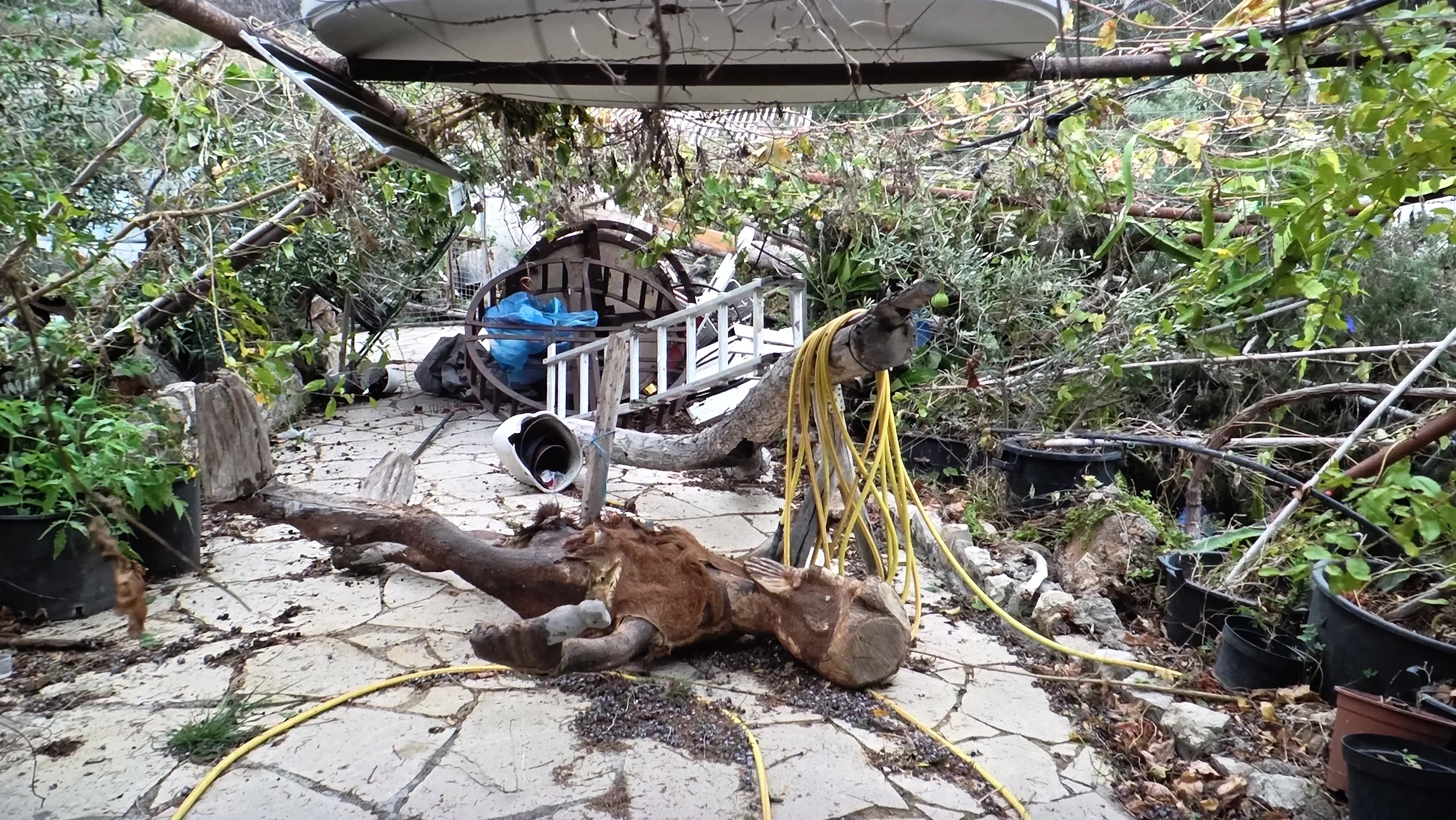 Δέντρα που εκριζώθηκαν έπεσαν σε υποστατικά κοντά στο μουσείο λαϊκής τέχνης Βρασίδας, προκαλώντας ζημιές, αλλά και στον χώρο στάθμευσης.
