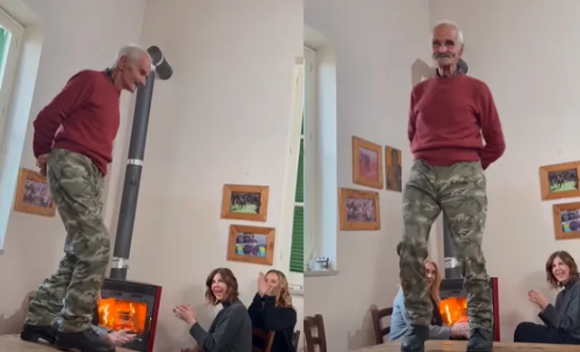 Το βίντεο δείχνει έναν 87χρονο παππού να χορεύει με ενέργεια και κέφι πάνω σε τραπέζι.