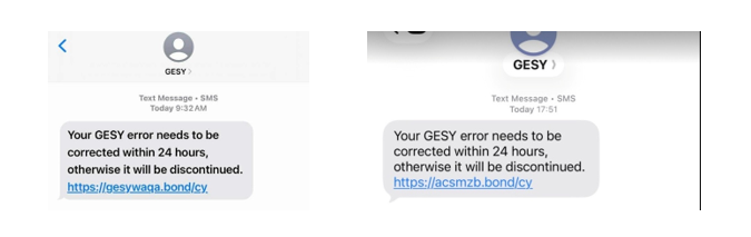 Ο Οργανισμός Ασφάλισης Υγείας (ΟΑΥ) ενημερώνει τους δικαιούχους του ΓεΣΥ ότι συνεχίζουν να παρατηρούνται περιστατικά αποστολής ψευδών και κακόβουλων γραπτών μηνυμάτων SMS σε κινητά τηλέφωνα, τα οποία εμφανίζονται ότι προέρχονται από το ΓεΣΥ, χρησιμοποιώντας το όνομα GESY. Επισημαίνεται ότι ο ΟΑΥ και το ΓεΣΥ δεν έχουν καμία σχέση με τα συγκεκριμένα μηνύματα.
