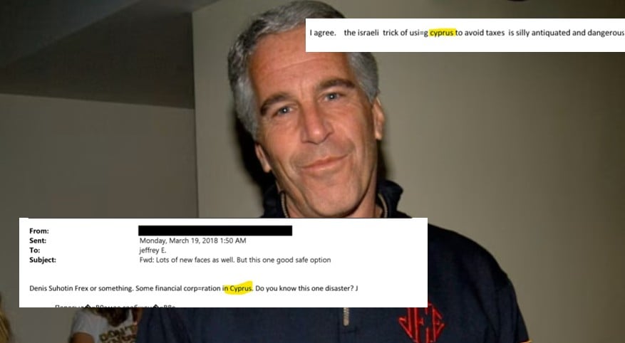 Ιδιαίτερο ενδιαφέρον παρουσιάζει e-mail του 2017, στο οποίο γίνεται λόγος για χρήση της Κύπρου ως εταιρικής έδρας, με τη φράση ότι το «ισραηλινό κόλπο χρήσης της Κύπρου για αποφυγή φόρων είναι παρωχημένο και επικίνδυνο». H αλληλογραφία δείχνει να είναι μεταξύ του πρωην ισρηλινού Πρωθυπουργού Εχούντ Μπάρακ και του Έπστιν και ενός άλλους προσώπου. Σε συνέχεια της αλληλογραφίας καταγράφεται εντολή για πάγωμα διαδικασιών που αφορούν κυπριακή εταιρεία και αναζήτηση «πραγματικής ευρωπαϊκής δικαιοδοσίας»