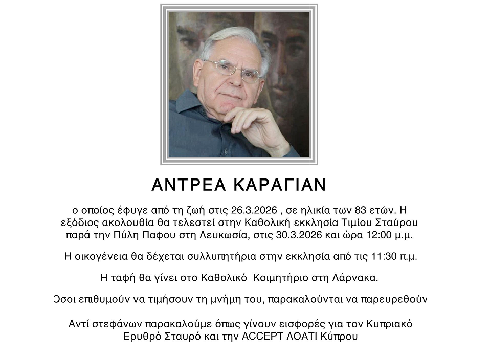 Αντί στεφάνων θα γίνονται εισφορές στον Κυπριακό Ερυθρό Σταυρό και την ACCEPT ΛΟΑΤΙ Κύπρου.