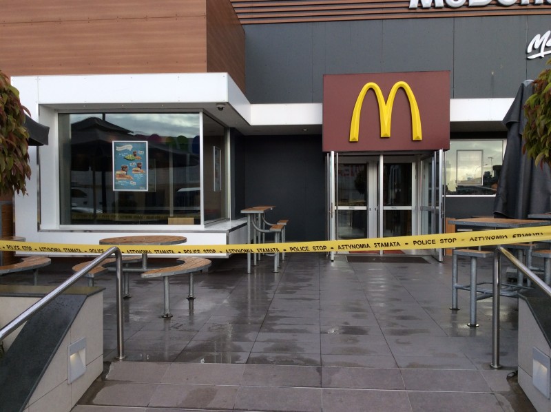Σύμφωνα με τις πρώτες πληροφορίες από την Αστυνομία, η ληστεία σημειώθηκε στις 03:00 όταν στο εστιατόριο εισήλθε άγνωστος που είχε καλυμμένο το πρόσωπό του με κουκούλα και υπό την απειλή πιστολιού και αφού έριξε έναν πυροβολισμό, προφανώς για εκφοβισμό, απέσπασε χρηματικό ποσό από το ταμείο του καταστήματος.