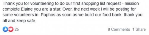 Αμέσως μετά την εξάπλωση της επιδημίας του κορωνοϊού στην Κύπρο, δημιουργήθηκε στο Facebook μια μεγάλη ομάδα εθελοντών που αποτελείται από πολλούς Βρετανούς, μόνιμους κάτοικους στην πατρίδα μας, αλλά και Κύπριους και άτομα από άλλες χώρες.