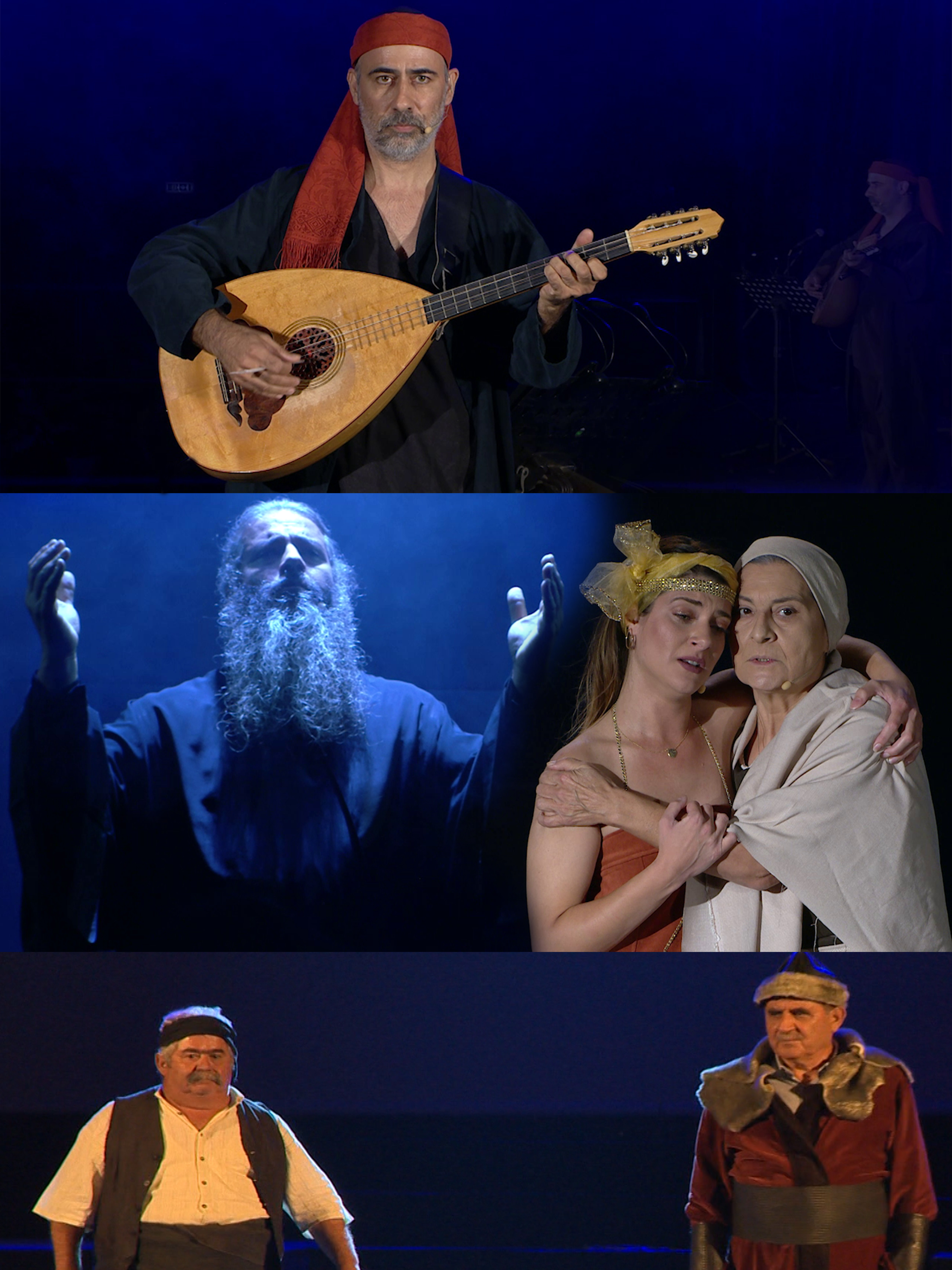 Οι ρόλοι στη σκηνή εναλλάσσονταν με οπτικογραφημένες σκηνές, που πραγματοποιήθηκαν στο Μουσείο Χατζηγεωργάκη Κορνέσιου, στις φυλακές του κάστρου Πάφου και στον Καθεδρικό Ναό Αγίου Ιωάννη, στην Αρχιεπισκοπή. Του ρόλους ερμήνευσαν οι γνωστοί ηθοποιοί Νεόφυτος Νεοφύτου (Κκιόρογλου), Ανδρέας Μελέκκης (ένας εφέντης), Ανδρέας Νικολαΐδης (γιος του κκιόρογλου), Κούλλης Νικολάου (Αλί μπέης) και Ιωάννα Παπαμιχαλοπούλου (Αϊσιέ- χιώτισσα Άννα), πλαισιωμένοι από πολλούς άλλους καλλιτέχνες, εθνοφύλακες και χορευτές.