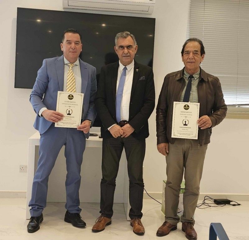 H CAMELOT βράβευσε τους πρώτους της συνεργάτες, οι οποίοι ξεχώρισαν το 2023, σε μια σεμνή τελετή που έγινε στα Κεντρικά Γραφεία της εταιρείας στη Λεμεσό. Ο πρόεδρος της CAMELOT κ. Κώστας Αθανασίου βράβευσε τον κ. Ματθαίο Ιεροκηπιώτη, από την Πάφο και τον κ. Αντρέα Πασχάλη από την φιλιά Μόρφου και ευχήθηκε το παράδειγμά τους να ακολουθήσουν και άλλοι συνεργάτες.
