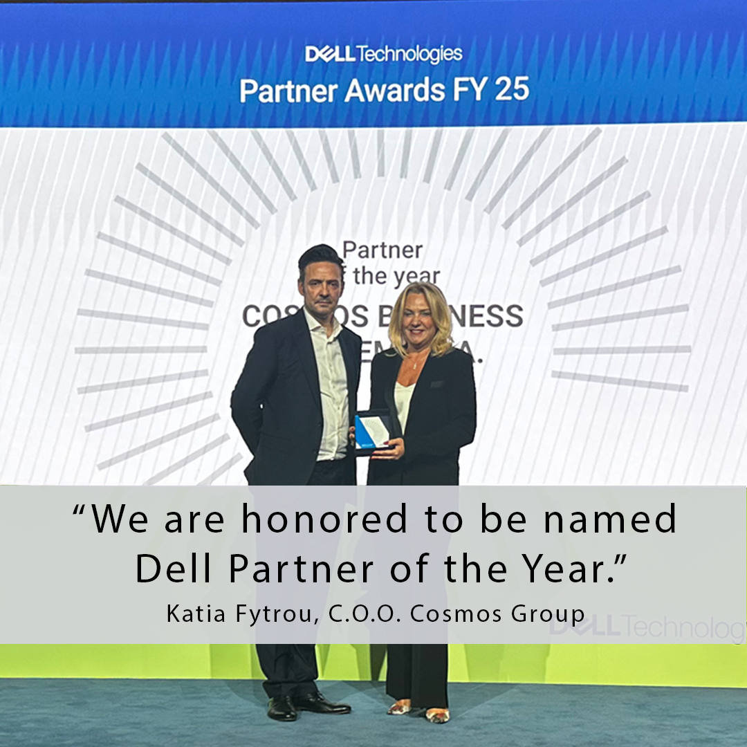 Η Cosmos Business Systems τιμήθηκε με τη διάκριση “Dell Partner of the Year” στο ετήσιο Partner Event της Dell Technologies, επιβεβαιώνοντας την ηγετική της θέση στην αγορά ολοκληρωμένων λύσεων πληροφορικής και την πολυετή, στρατηγική συνεργασία με τη Dell Tecnologies, ως Dell Titanium Partner , που είναι και η ανώτατη διεθνής βαθμίδα σε επίπεδο συνεργατών .