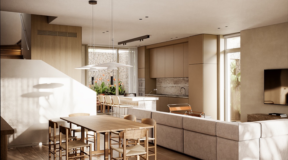 Ο σχεδιασμός εδώ ακολουθεί ξεκάθαρη λογική: φυσική πέτρα, ξύλο, καθαρές γραμμές και άφθονοι υπαίθριοι χώροι. Στο εσωτερικό, η σύγχρονη αρχιτεκτονική και τα smart home συστήματα κάνουν την καθημερινότητα πιο απλή. Η αίσθηση είναι ξεκάθαρη - σύγχρονα σπίτια που αφομοιώνονται από το φυσικό τοπίο αντί να το επιβαρύνουν.