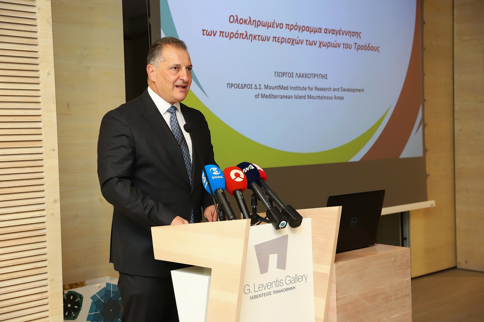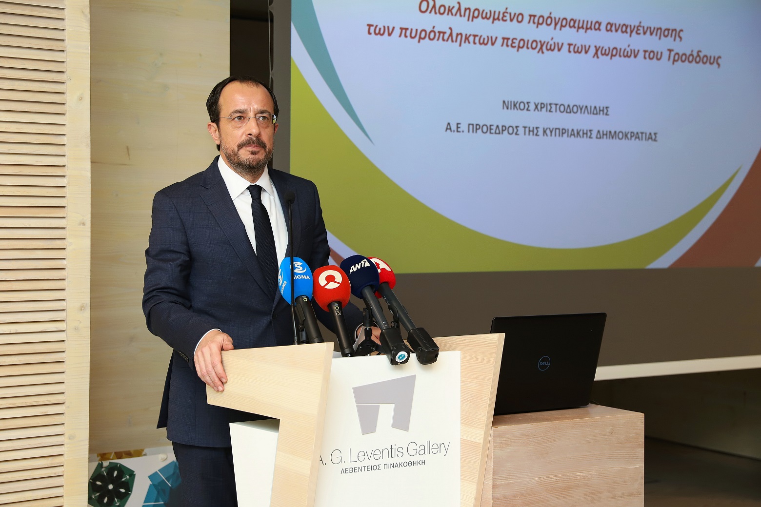 Ο Πρόεδρος της Κυπριακής Δημοκρατίας Νίκος Χριστοδουλίδης χαιρετίζοντας την εκδήλωση, δήλωσε: «Θέλω να εκφράσω τα θερμά μου συγχαρητήρια προς όλους τους συντελεστές, στο ίδρυμα της Coca-Cola HBC για τη γενναιόδωρη προσφορά εταιρικής ευθύνης και την στήριξη σε αυτή την προσπάθεια αποκατάστασης και αναγέννησης των περιοχών, θερμές ευχαριστίες στο Ίδρυμα Α.Γ. Λεβέντη που πάντα συνεργαζόμαστε στενά, για την πρωτοβουλία καθώς και στο Ινστιτούτο MountMed, το οποίο ανέλαβε και την υλοποίηση της ιδέας συντονίζοντας με επαγγελματισμό και επσιτημονική τεκμηρίωση, το έργο αυτό. Ως Πολιτεία θα συνεργαστούμε μαζί σας για να υλοποιηθεί στην ολότητά της αυτή την τριετία και την ίδια στιγμή να αξιοποιήσουμε αυτό το μοντέλο και για άλλες περιοχές της χώρας μας.»