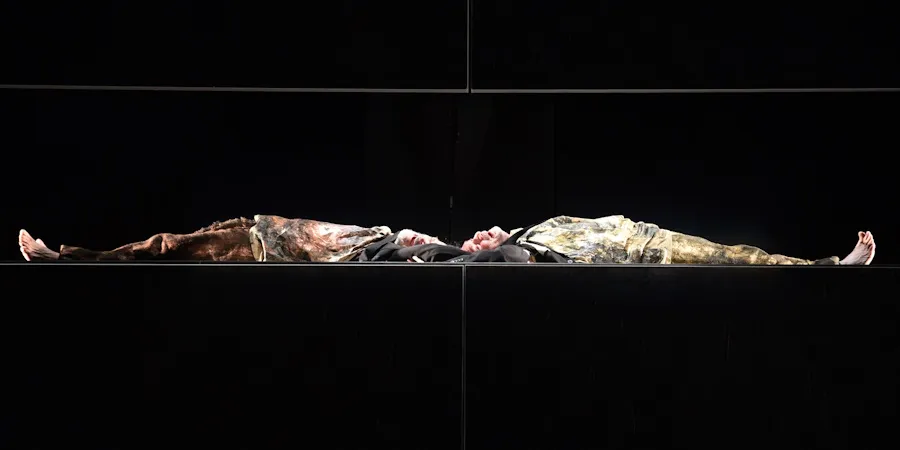 Πρόκειται για μια παραγωγή του Emillia Romagna Teatro, μια παράσταση – σταθμό, στα όρια του μνημειακού και του κωμικού. Ο Θεόδωρος Τερζόπουλος δεν «σκηνοθετεί» με την κλασική έννοια του όρου. Επανασυνθέτει. Διεμβολίζει το κείμενο. Επανενεργοποιεί τον μύθο και τον παραδίδει στο σήμερα, όχι ως αφήγηση, αλλά ως σωματική, οντολογική εμπειρία. Δεν είναι ένα έργο για την αναμονή, αλλά ένας καθρέφτης της ύπαρξης, ένα υπόκωφο ουρλιαχτό ενός κόσμου που διαρκώς καταρρέει.