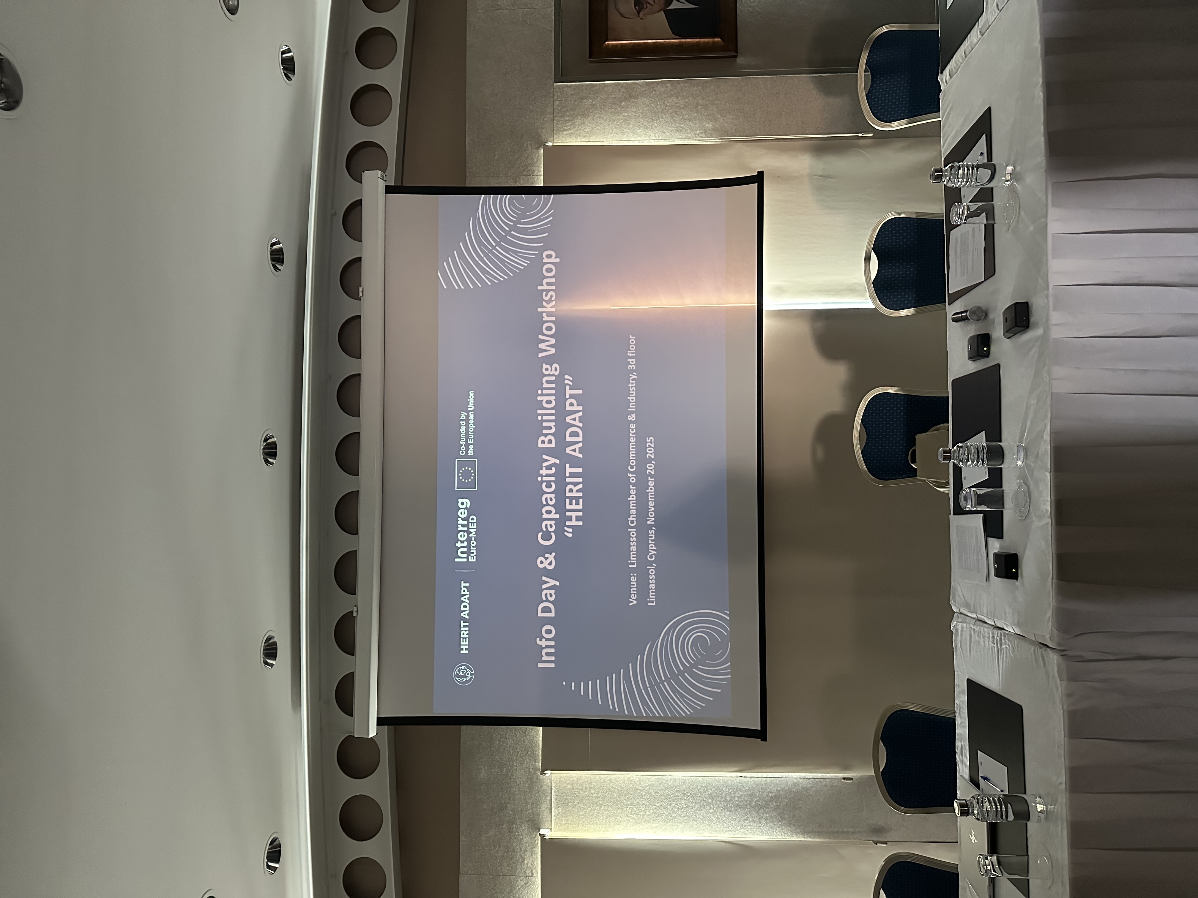 Η Εταιρεία Τουριστικής Ανάπτυξης & Προβολής Περιφέρειας Λεμεσού στα πλαίσια του έργου HERIT ADAPT Interreg Euro-MED, διοργάνωσε ημερίδα πληροφόρησης και εργαστήριο δεξιοτήτων, στα γραφεία του Εμπορικού & Βιομηχανικού Επιμελητηρίου Λεμεσού, την Πέμπτη 20 Νοεμβρίου 2025.