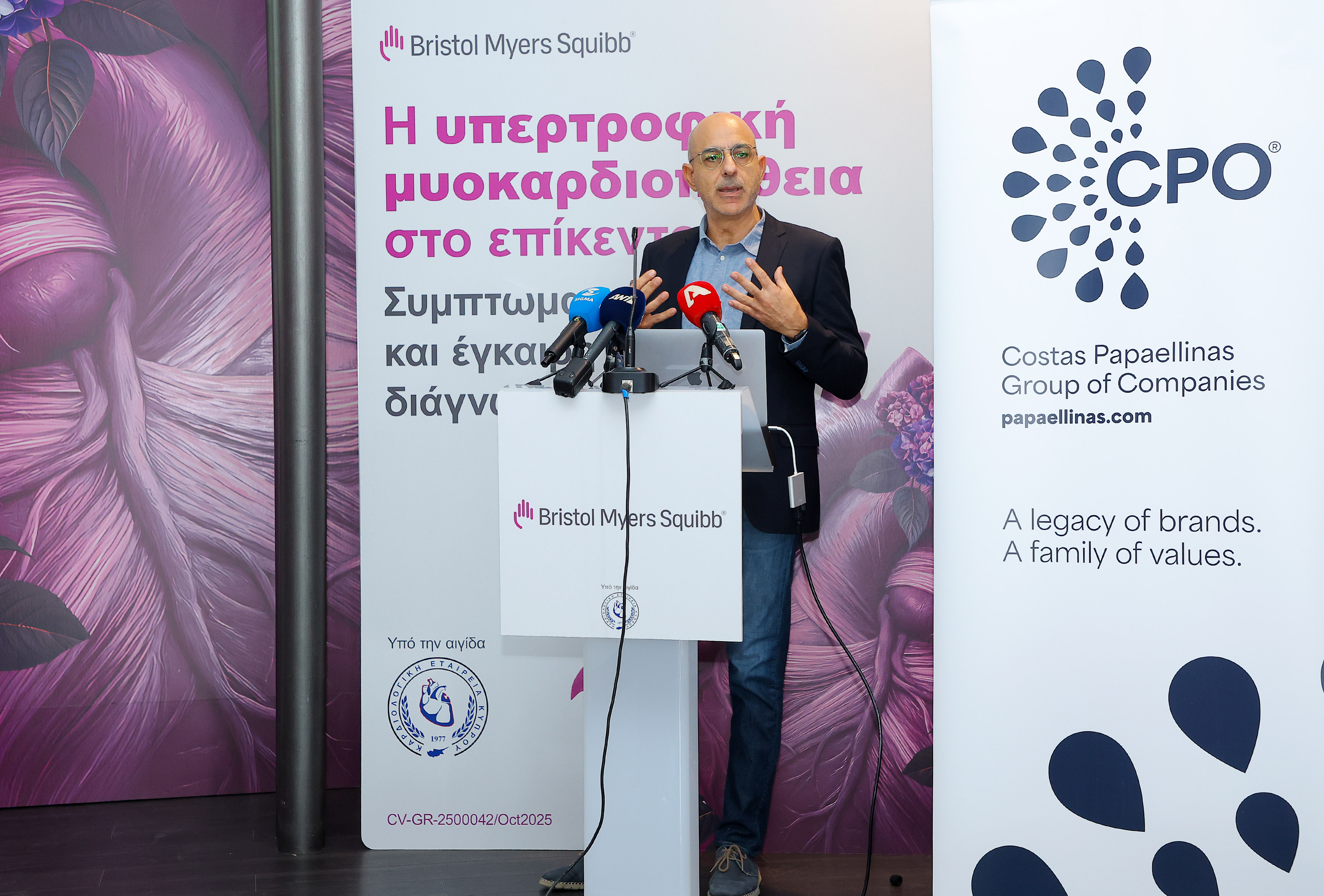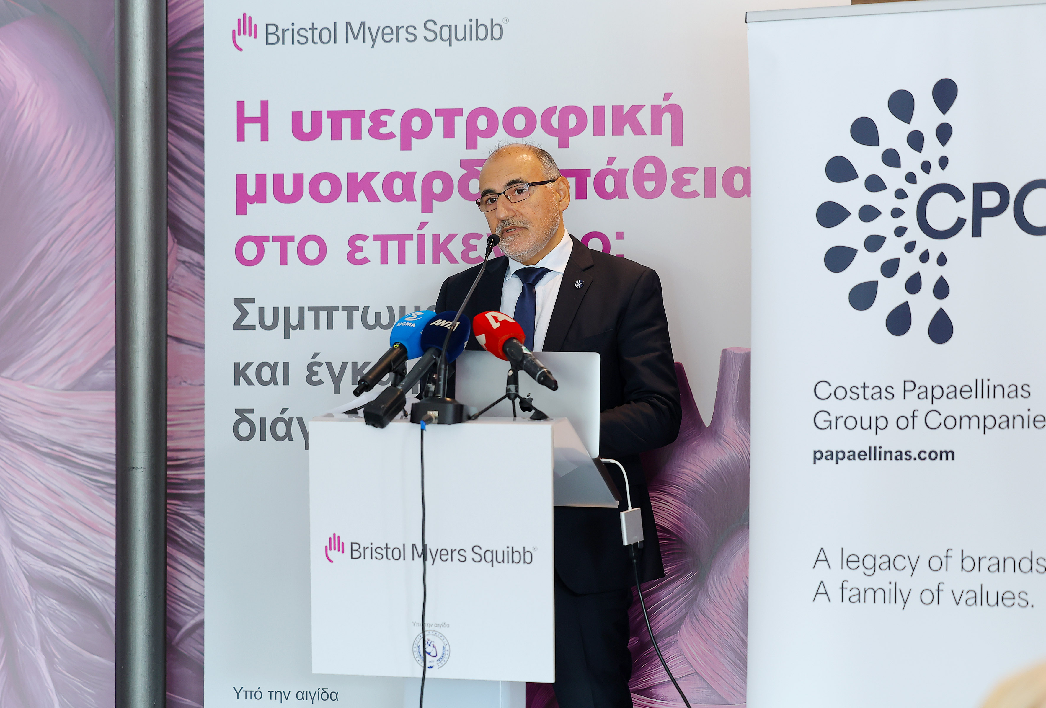 Ευχαριστώντας τους συμμετέχοντες για τη συμβολή τους στην κοινή προσπάθεια για την αντιμετώπιση των μυοκαρδιοπαθειών, ο Γιώργος Τσιακαλάκης, Διευθυντής Market Access & External Affairs της BMS Ελλάδας και Κύπρου ανέδειξε το αποτύπωμα της Bristol Myers Squibb στον τομέα της καρδιολογίας και τόνισε τη δέσμευση της εταιρείας να επενδύει στην Έρευνα και Ανάπτυξη καινοτόμων τεχνολογιών υγείας που βελτιώνουν την ποιότητα ζωής των καρδιολογικών ασθενών, μειώνοντας παράλληλα το βάρος για το σύστημα υγείας. Με ευρείες συμμαχίες και συνεργασία με την επιστημονική κοινότητα και τους κοινωνικούς εταίρους, η εταιρεία καθιστά ορατή την «αόρατη» απειλή των μυοκαρδιοπαθειών και προάγει ένα σύγχρονο, βιώσιμο πλαίσιο φροντίδας. Μεταξύ άλλων, ο ίδιος δήλωσε: "Σε επίπεδο διαμόρφωσης πολιτικής υγείας, υλοποιήσαμε το Cardiomyopathies Matter, έναν οδικό χάρτη για τη βελτίωση της διαχείρισης των μυοκαρδιοπαθειών στην Ελλάδα, ενώ παράλληλα ενισχύουμε την ευαισθητοποίηση της κοινής γνώμης μέσα απο στοχευμένες καμπάνιες και εκστρατείες ενημέρωσης για την υπερτροφική μυοκαρδιοπάθεια".